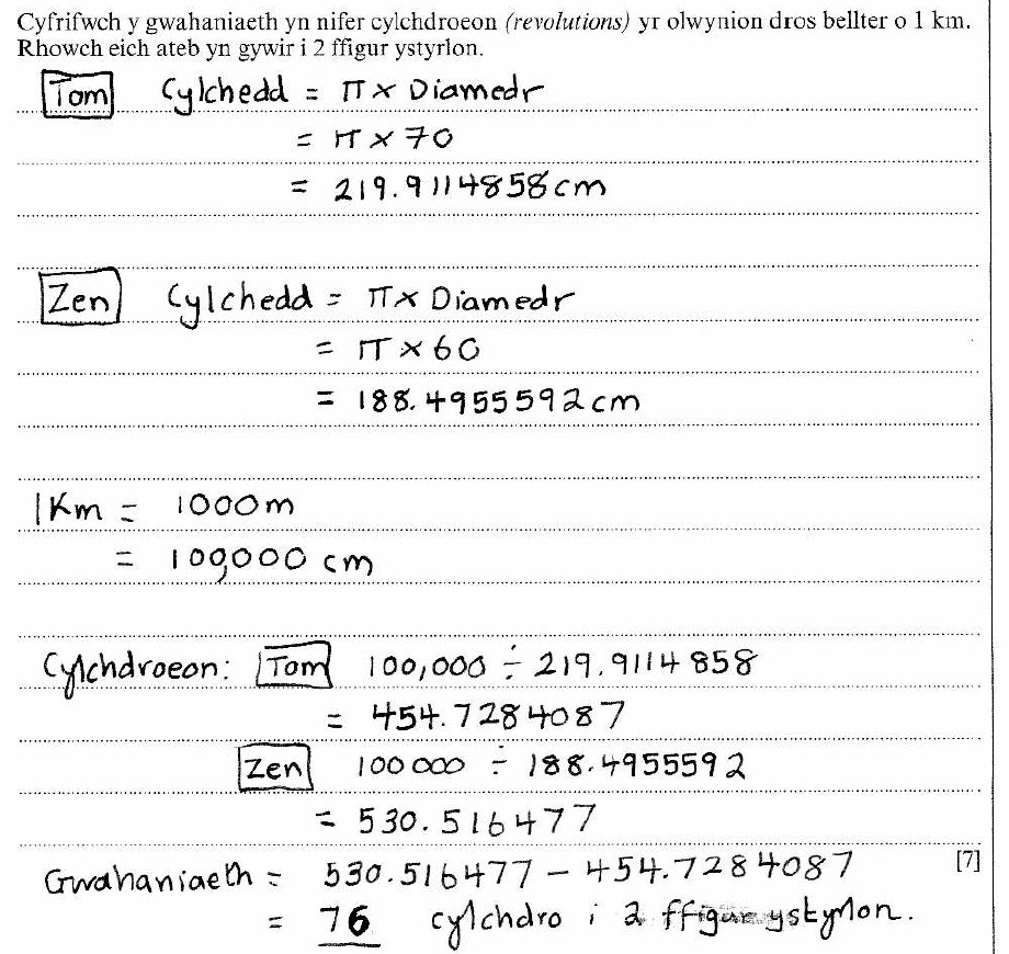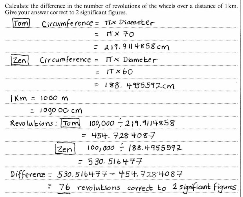 Bicycle Wheel Revolutions - [7 Marks]