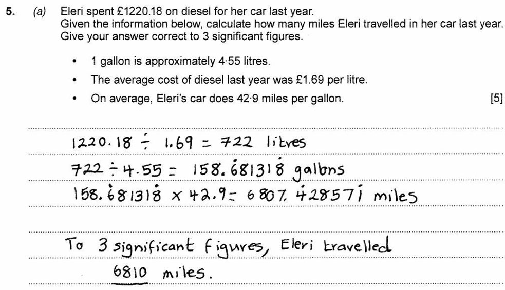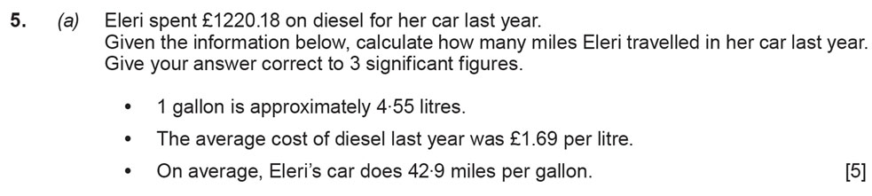 Distance Travelled in a Car - [5 Marks]