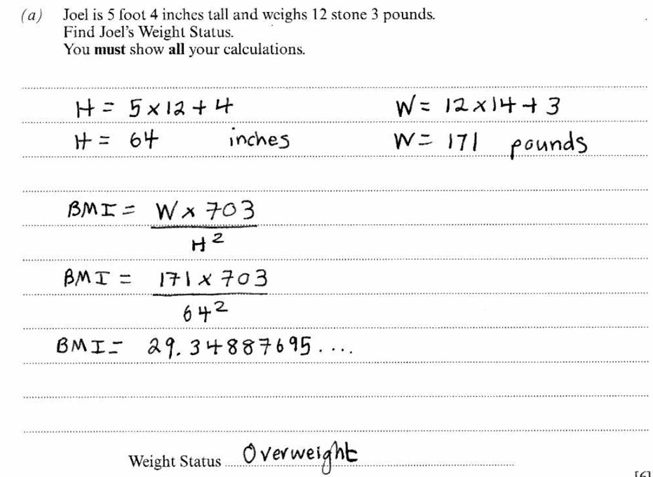 Joel’s BMI - [6 Marks]