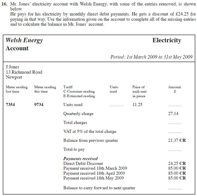 Electricity Bill - [6 Marks]