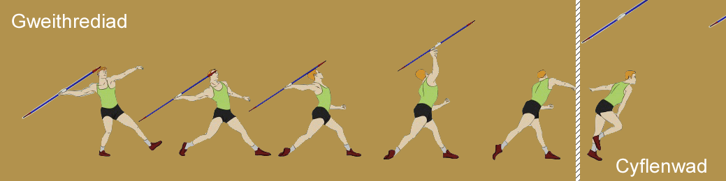 Gan fod symudiadau ym myd chwaraeon yn gymhleth, yn aml mae pob cam yn cael ei rannu’n is-gamau. Er enghraifft: