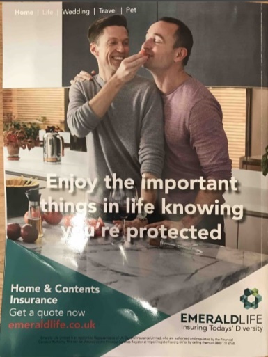 Emeraldlife insurance is tapping into the security element of the reader’s lives. For any couple/home makers, feeling protected is important and by using two men in the advert, this company is targeting a group that many insurers don’t – or not explicitly.
